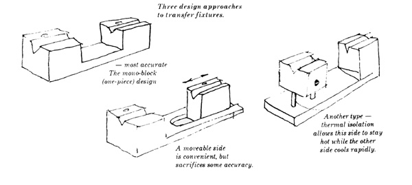 THE MECHANICS OF TRANSFER A DIFFERENT TRANSFER TECHNIQUE, "REMOVAL AND REALIGNMENT" This technique was originally described to me by John Grieger, who has been an ULTRA TEC faceter for many years. John used no transfer fixture. First though, let's look at a method that does use a transfer fixture, but not in the usual way. |